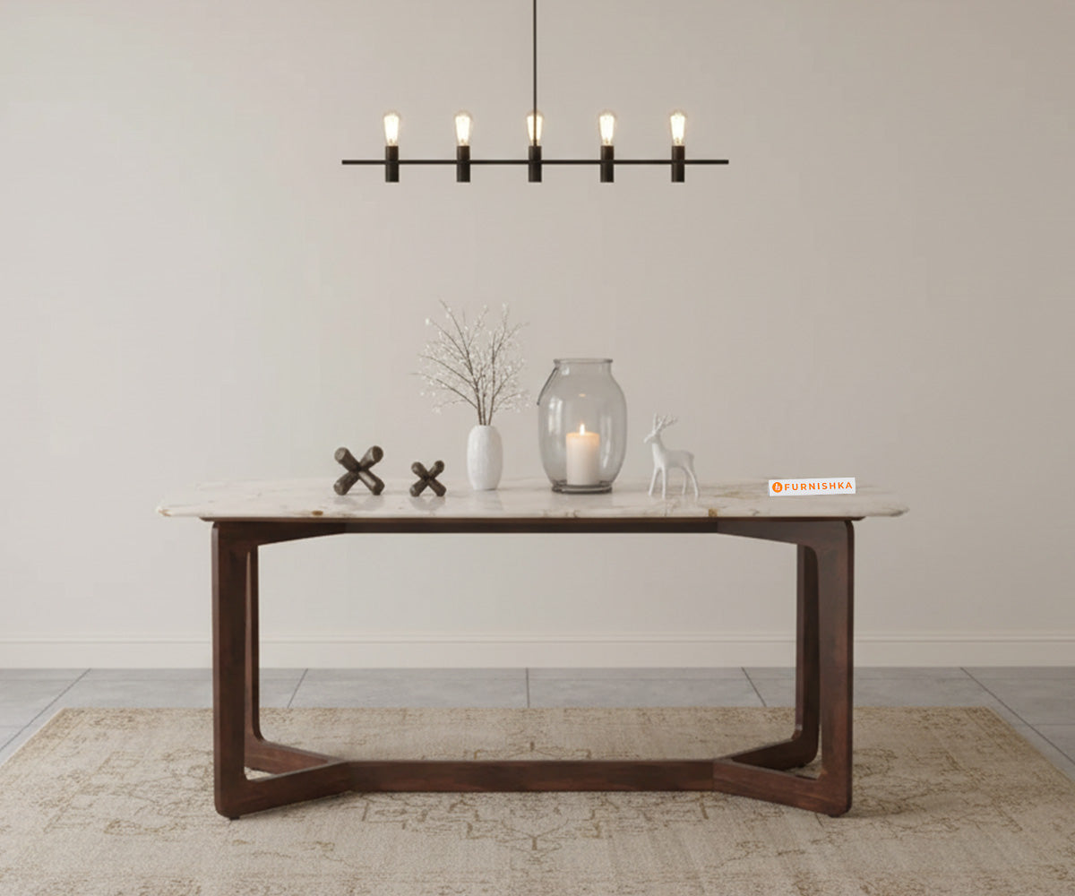 Vetra 6 Seater Dining Set With Rosalia Gold Top -Engineered Marble Sandwich